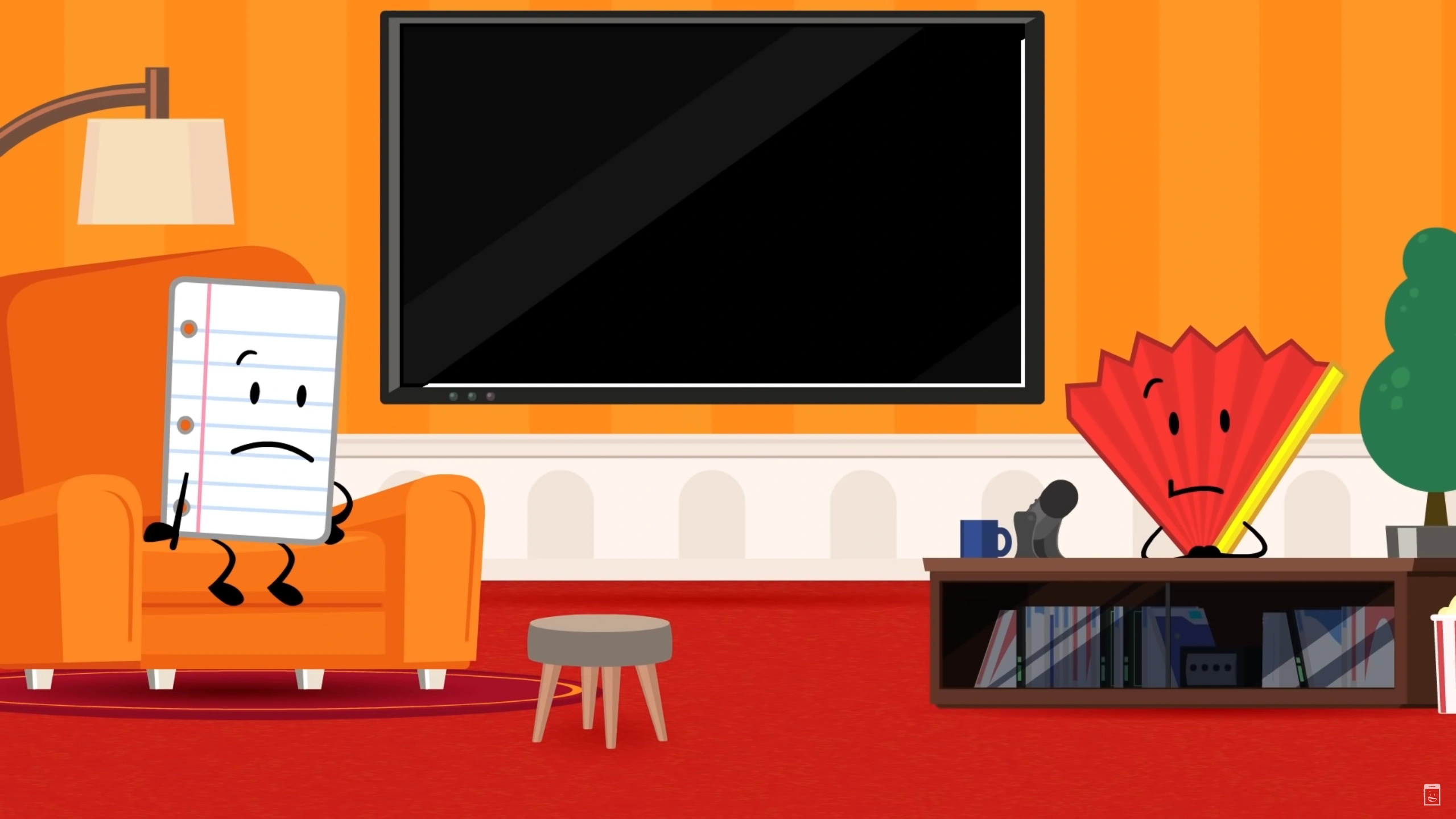 Fan and Paper are seen laughing with each other in the latter's long awaited interview. Paper tells Fan about his issue with Dolphins and how scared of he was of them. The two are then cut off by Test Tube, who tells Fan that they had received Spoiled Lemon tickets that had to be claimed "right now". Fan says that despite how amazing it sounded, he wanted to stay "in the moment" with Paper. Paper says that they could do the interview later, which Fan hastily agrees too before running out of the door. Paper walks over to Fan's desk and drops his lucky mug on the ground, and an evil grin forms on his face. A Dolphin then appears behind Paper, leading him to scream.