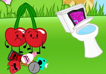 The Cherries storm off, upset that their joke was ruined by this scene. Meanwhile, the bickering between Marshmallow and Apple turned over a new leaf, and the two discovered the ludicrousness of their lengthy battle had been based on, and come to form a truce. However, all is well for not very long, as Cherries set up a trap which knocks Marshmallow all the way to the planet Mars, unknowingly placing her in severe danger. Apple demanded to know who was responsible for sending Marshmallow to space. The Cherries avoid persecution for their scheming by passing the blame onto Box, who is later sent to the Calm Down Corner for a timeout by Lightbulb for his actions.