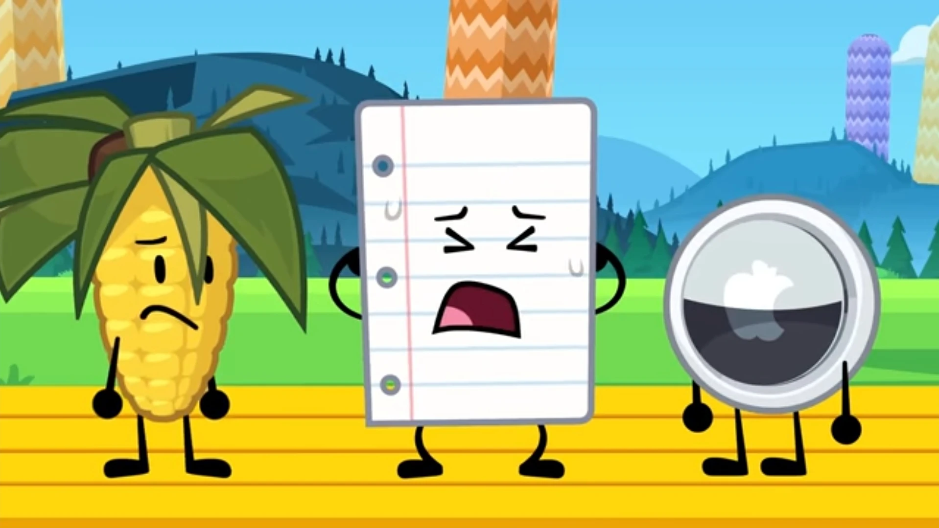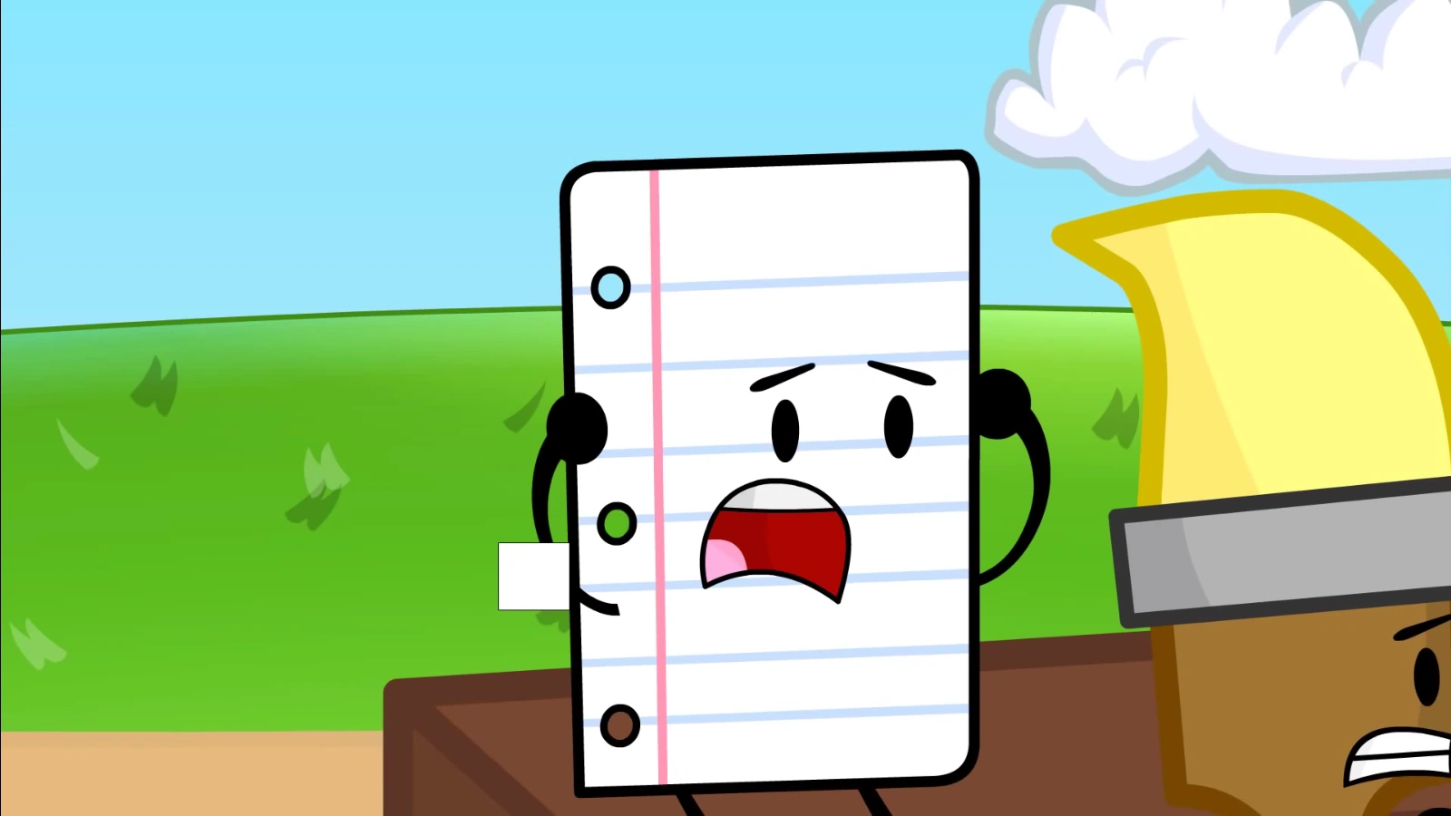 While the animation is changed back to it's originality, Paper does not express extreme delight, or rather hatred towards this at all. He is safe from elimination, due to his previous immunity. As for the cliff diving challenge, Paper receives a water-proof bag to wear, as so he is safe from harm. Once he jumped off, however, a gust of wind blows him onto the cliff, and into the feces.