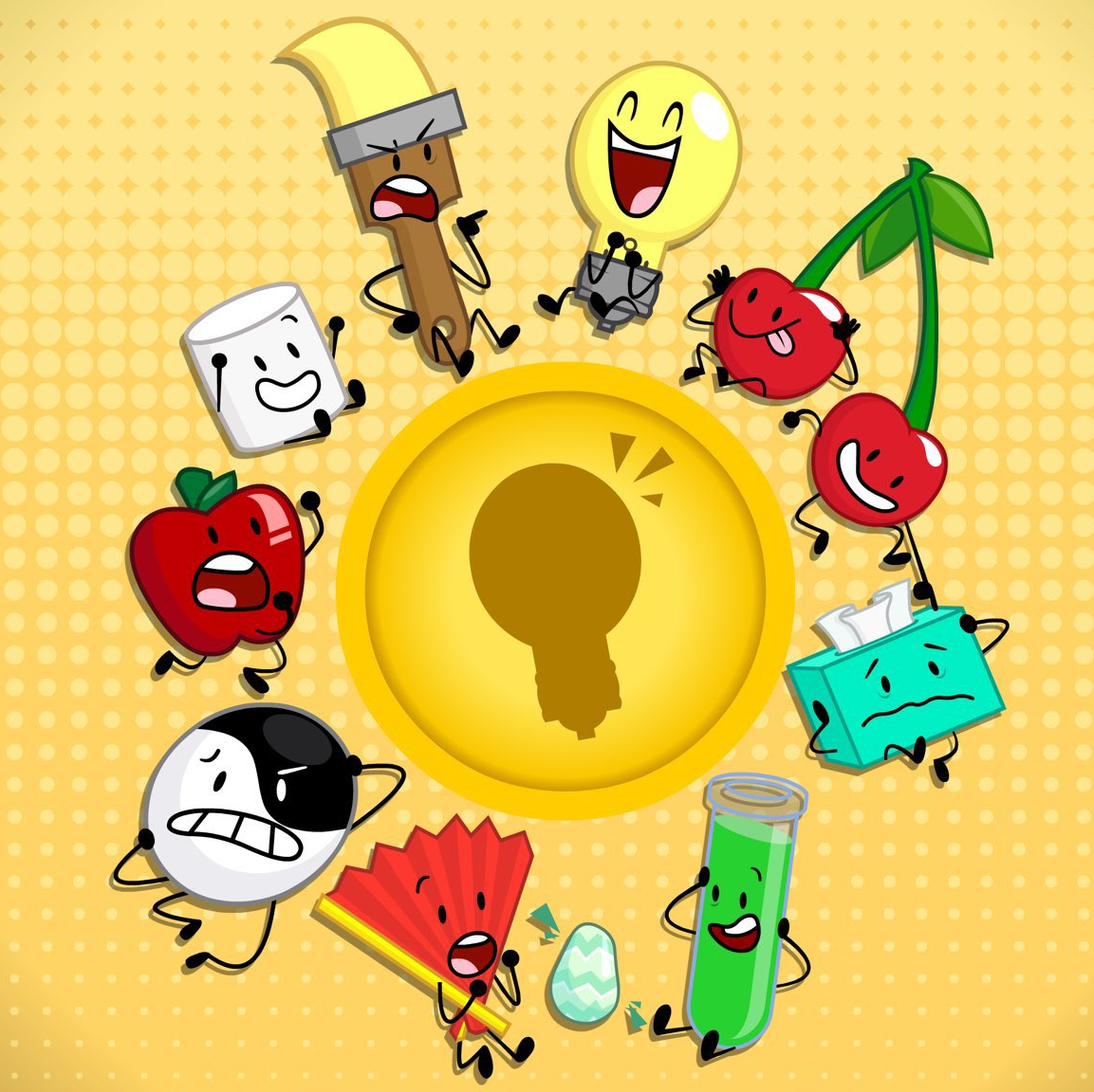 The Bright Lights were one of the two opposing teams competing in Inanimate Insanity II, the other being The Grand Slams. This team was formed in "Breaking The Ice". The members include team captain Lightbulb, as well as Apple, Cherries, Fan, Marshmallow, Paintbrush, Test Tube, Tissues, and Yin-Yang. During "Theft and Battery," MePad was temporarily made a member of the Bright Lights.