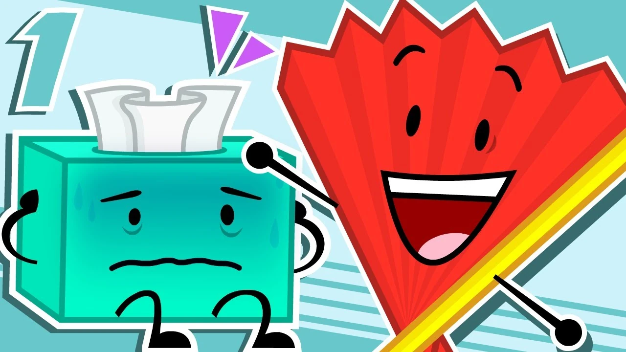 Tissues is interviewed by Fan. The episode starts out on Fan welcoming the audience to his first ever episode of Fan's Fantastic Features. He created the show to get over his fear of talking to other people with Test Tube being more than happy to be the cinematographer. Fan then welcomes Tissues and thanks him for being his first guest. Fan then brings up how he and Tissues never talked with each other before, prompting Tissues to apologize and do different voices for fun while failing miserably. Fan then tells Tissues that he was the first contestant eliminated and that viewers may see him as a joke because of that. Tissues takes offense and remarks that you save the best for last and that since he came in last, that makes him the best. Fan complements him for the opinion, offending Tissues more, with him saying that it is the truth. Fan then asks Tissues about his condiShAWn and if he is comfortable talking about it. Tissues is not and Fan passive-aggressively remarks that the question cards were 95 percent questions about the condiShAWn. Tissues, frustrated, tells Fan that he broke him and will talk. He then goes on to explain the symptoms if the condiShAWn: saying he gets muscle spasms, triple migraines, violent nausea, uncontrollable heat waves, a single hurting tooth, vertigo, vertistop, vanishing fingerprints, and temporary blindness. Fan, seeing Tissues upset, moves on to something more positive, such as asking what his favorite color is. Tissues reveals he doesn't have a favorite. As long as it is not the color green as he hates the color. Upon realizing he indirectly insulted Test Tube, Tissues apologizes to her, only for her to sarcastically laugh and thank him. This angers Tissues, and mocks her for her fake laugh, saying that his fake laugh is better, and saying he hates fakers. Fan takes this opinion to heart, and agrees that the show shouldn't be pre-planned and fake. He, then, angrily throws away his question cards and mentions that his show should be about him and his friend sitting across from each other and talking. Tissues is taken aback and touched, asking Fan if he really thinks that they are friends. Fan confirms it. Saying that they are friends because they were on a show and and same team together even if was for a few minutes. Fan then explains that means something special to him and that is a bond for life. Tissues then falls asleep, tired from his condishAWn. Fan, seeing this, finds it adorable and asks Test Tube to lower the lights down and announces that the interview is over for now and that he will see the viewers next time on his show. Fan then whispers to Test Tube to get Tissues a blanket. Test Tube then yells that she is on it, causing Tissues to wake up, startled by the yell, ending the episode. The voice-over after the episode has Fan reading of the special credits and Tissues commenting that the audience doesn't have to watch any more episodes because his episode is the best one and comments on his fake laugh being the best as well. Fan calls Tissues out on this, saying that was a selfish comment and tells the viewers to please continue watching the show.