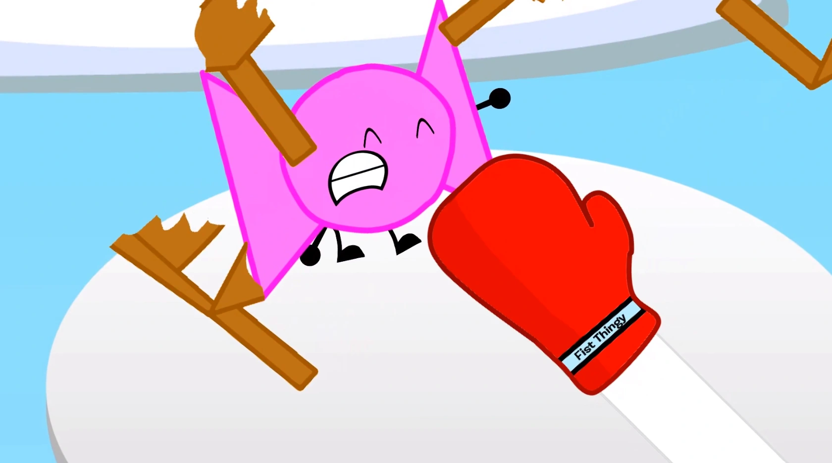 - Before Bow and Paper are hit by the fist thingy during the "physical flat and the personality flat", the text "trololol why duz bow liek chairz?" appears above "IQ < A potato".