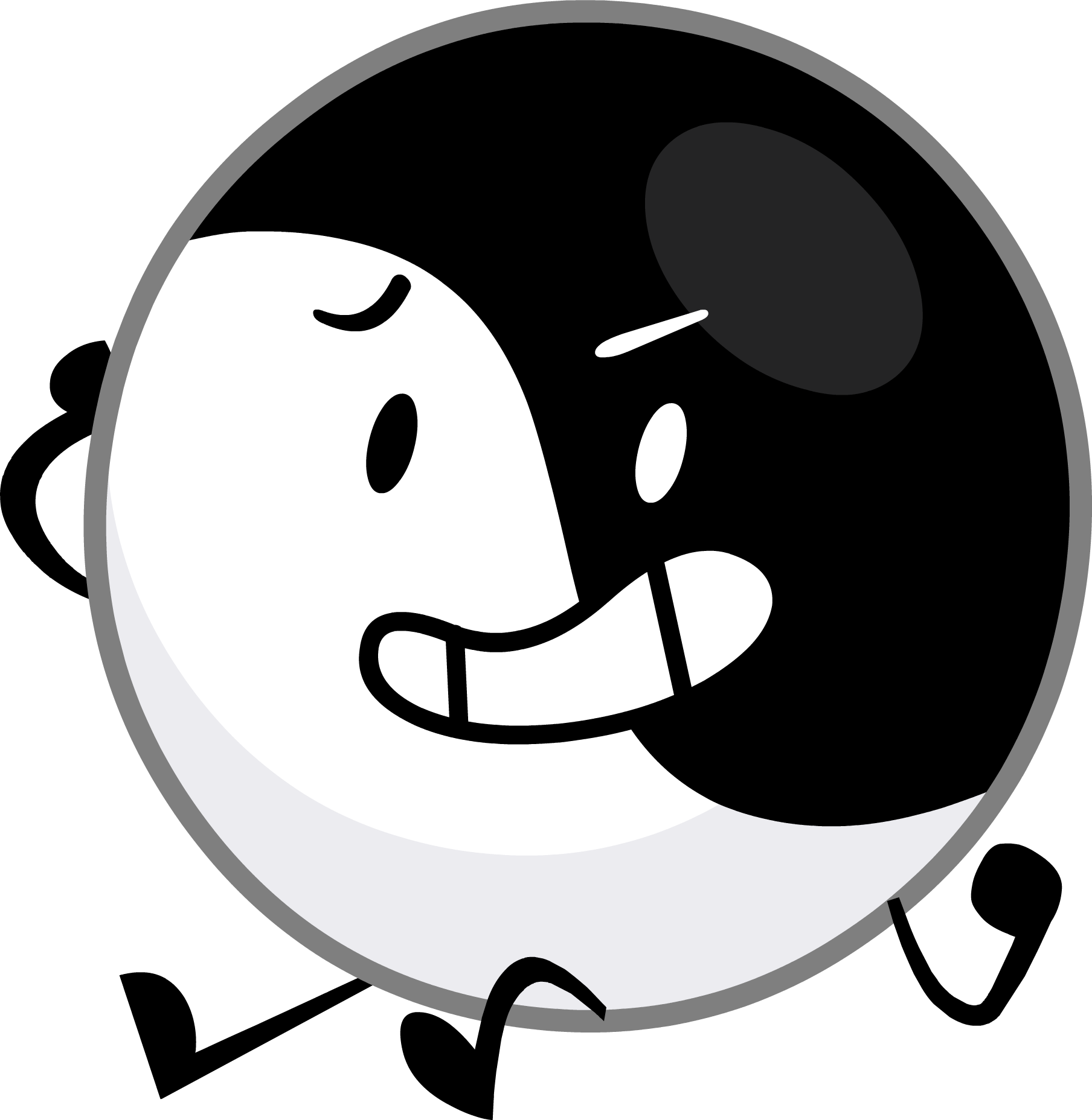 Yin-Yang appears as a spherical form of the yin-yang symbol (symbol of taoism), split white and black by a wavy division, nearly in the Old Yin position. They have two arms and two legs, which both halves can control at their own will. Yin, the white half, is on the lower left-hand side, and Yang, the black half, is on the upper right-hand side. Sometimes, Yin is on the right-hand side, and Yang is on the left-hand side. Yin-Yang’s mouth is on Yin's side, with one eye shown black, whereas the other on Yang's side is shown white. As seen in "Try Not To Laugh Challenge," when Yang takes full control of the body, Yin's eye becomes white with a black outline. As for Yin taking full control of the body, Yang's eye becomes black with a white outline.